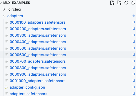 使用微调框架进行微调,结果生成模型适配器权重文件目录