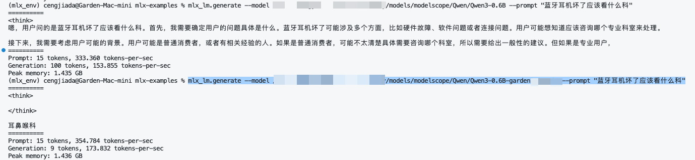 mlx_lm.generate --model /models/modelscope/Qwen/Qwen3-0.6B-garden --prompt "蓝牙耳机坏了应该看什么科"